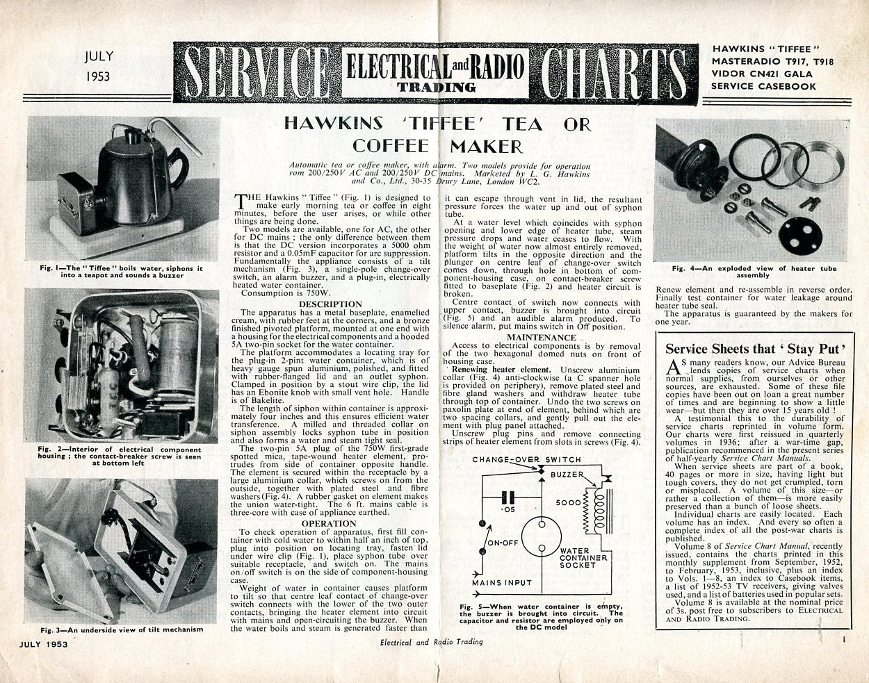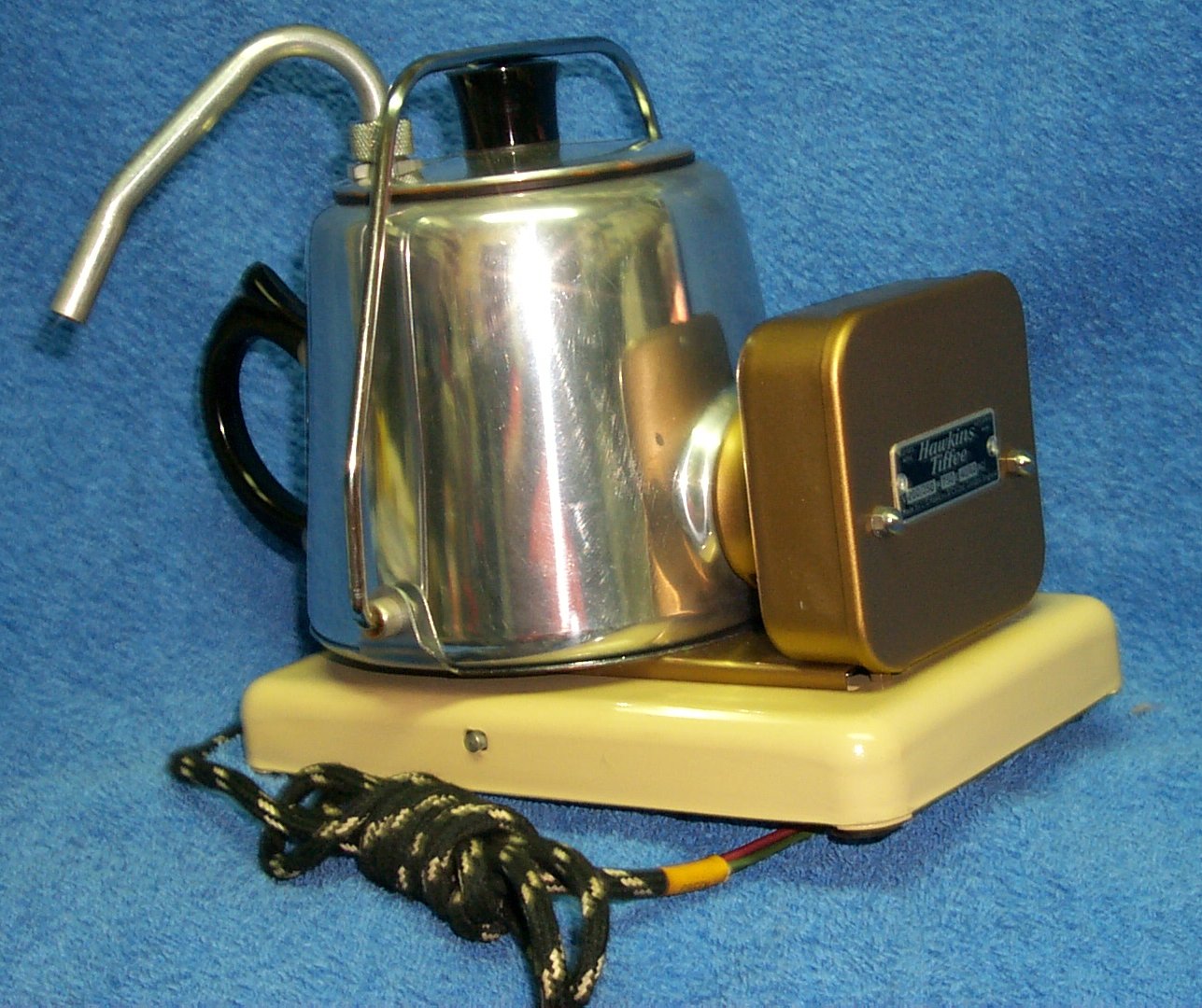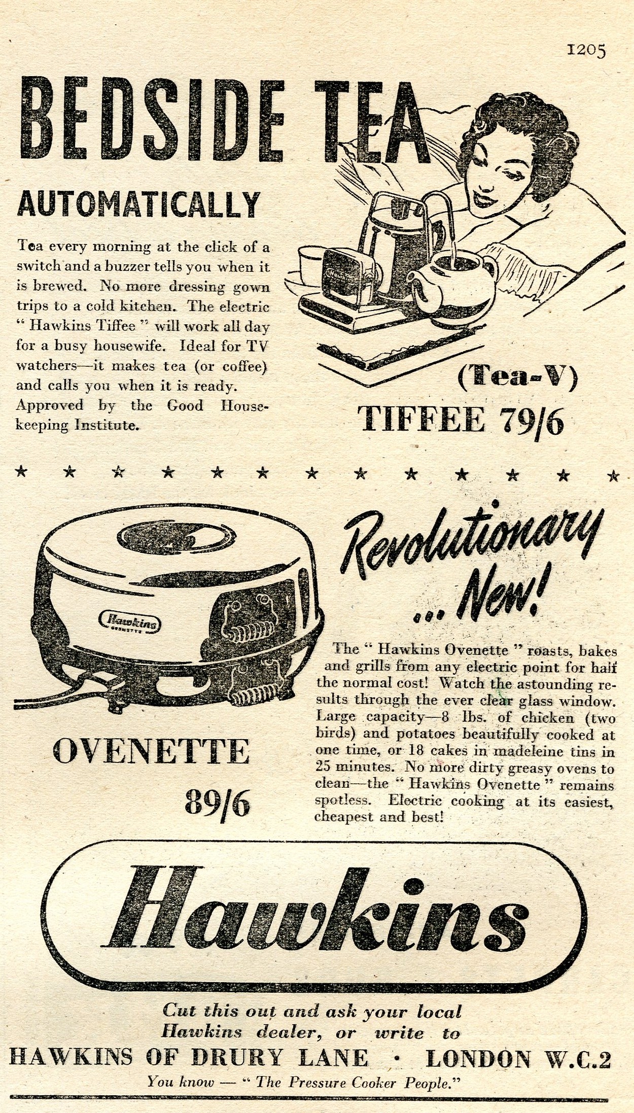 I have a 1954 catalogue which shows the Tiffee, listed as LGH 1500, price £3-19-6 (wholesale). It bears the delightful slogan: “Hawkins Tiffee – Tea in a Jiffy”