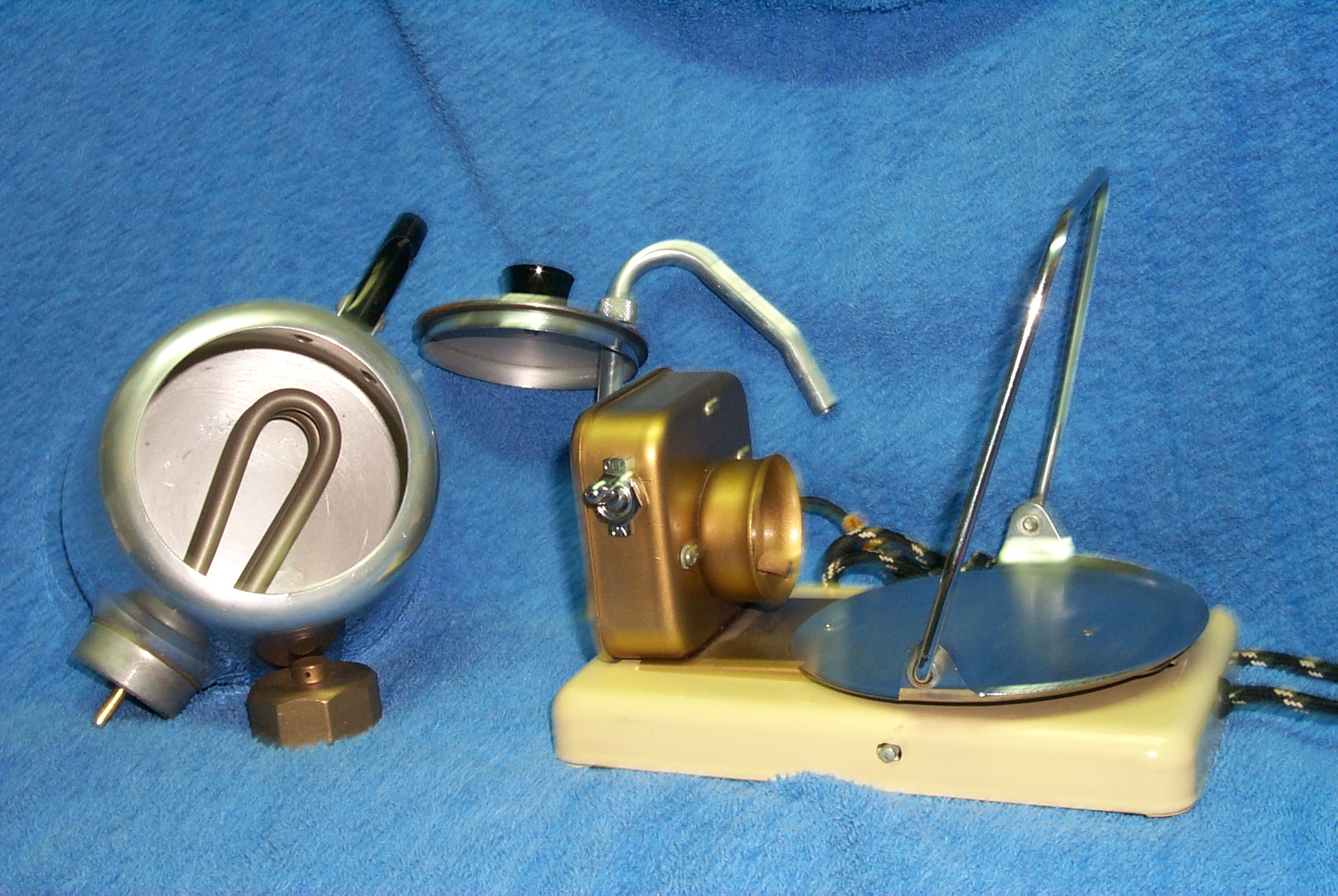 The pictures supplied by website visitor Steve show his mint condition Tiffee, which has been in his family since new and has never had a plug fitted or been filled with water! It is still in its original box (although Steve admits that this is rather tatty), and it even has its instruction leaflet!