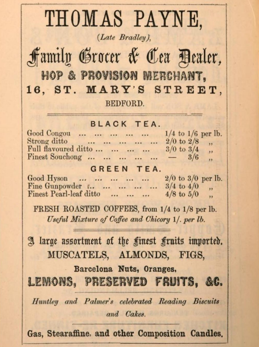 In 1861 Charles Maynard Walker was fifteen years old. He had left his mother's home and was living at 16 St Mary Street, Bedford, where he was working at Bradley's Grocers as an assistant. His employer was Maria Loader Bradley, a well-to-do young widow. Maria's husband, Charles, had died on 27th December 1858 at the age of 30, leaving her with two small children. He had only recently been appointed as a town councillor.
