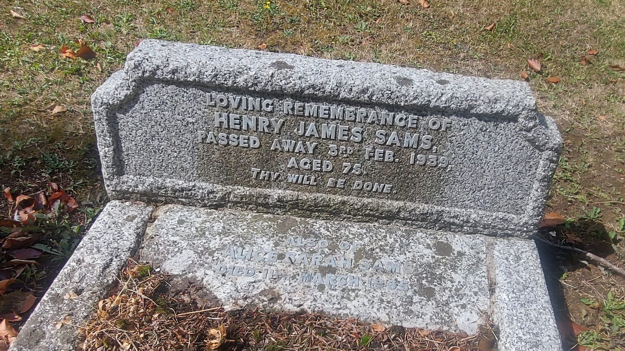 Alice Sarah Sams' name was added to the grave on her death on 11th March 1965.