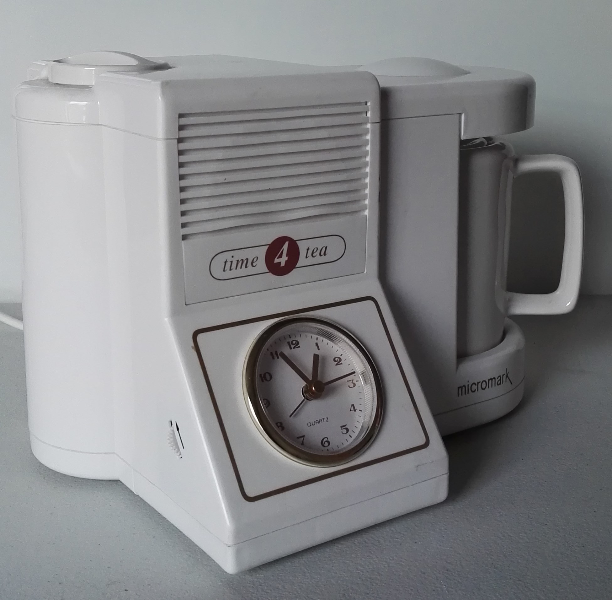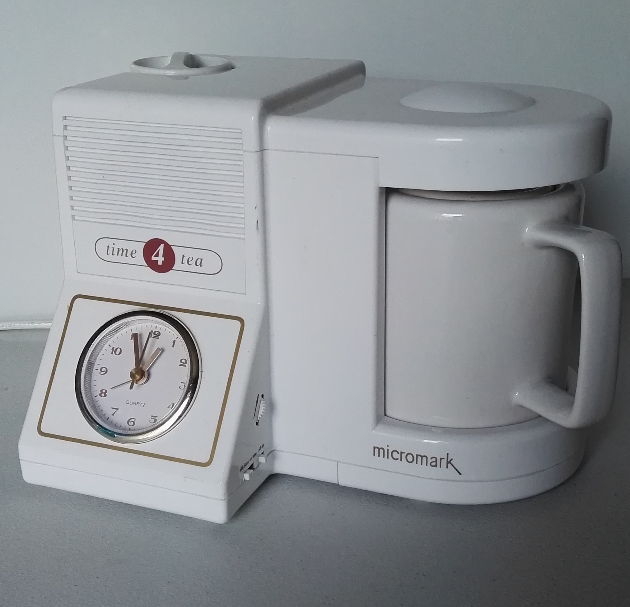 In 2002 Micromark bought the original tooling for the Goblin Teamatic, and from that base, they manufactured the Time 4 Tea. It was first offered for sale in the Daily Telegraph on Saturday 28th September 2002. Their press release read: