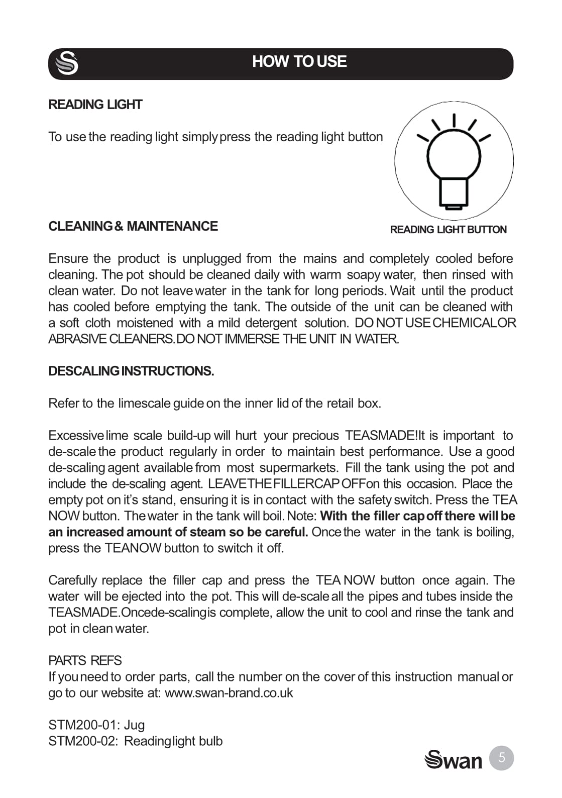 The original v1.0 pdf of the Swan Teasmade STM200N instruction manual