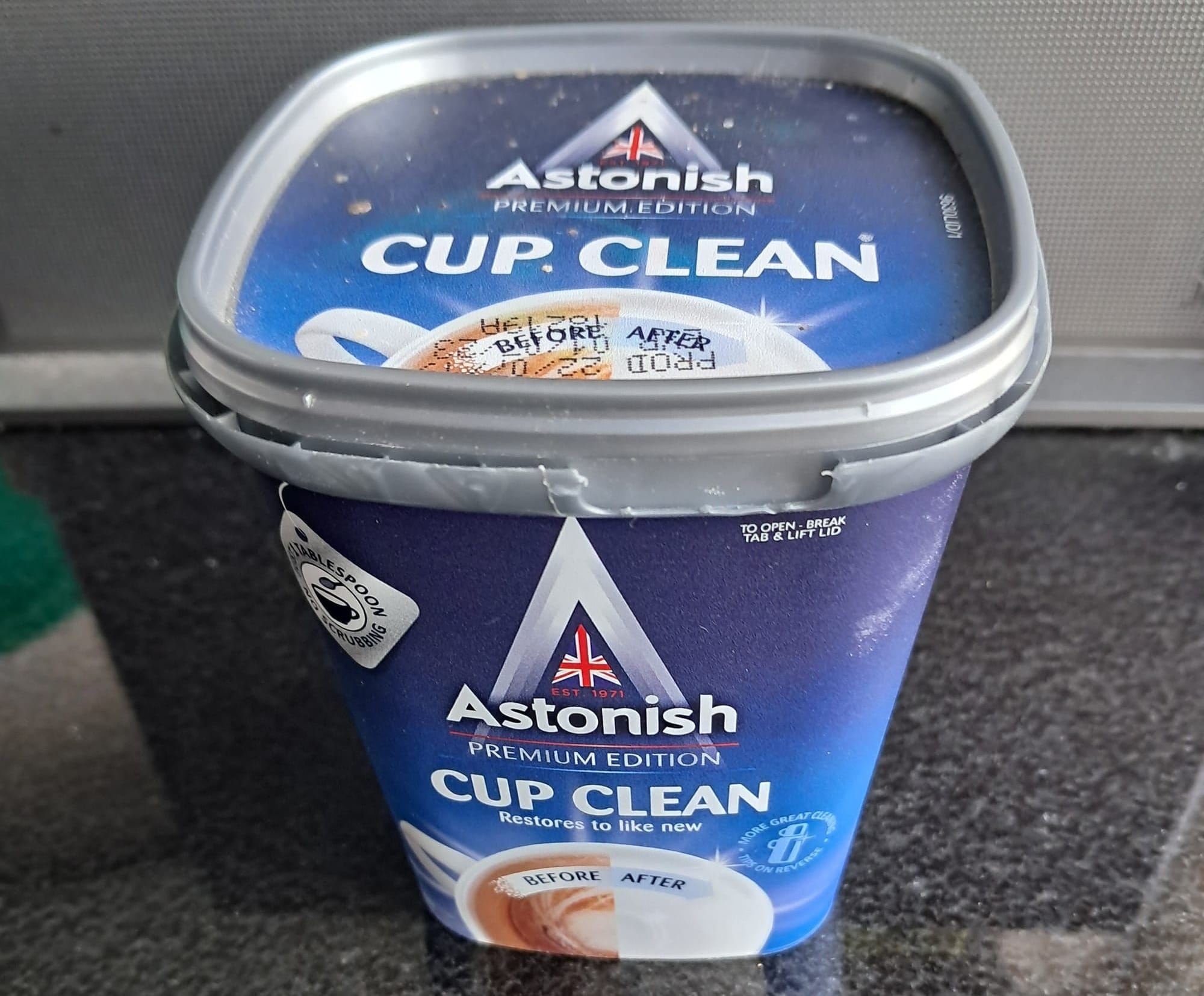 If you would like to use a commercial product, Doug recommends Astonish. It is available as Astonish Cup Clean. It is available as a single tub, or in a pack of three. Doug says:
